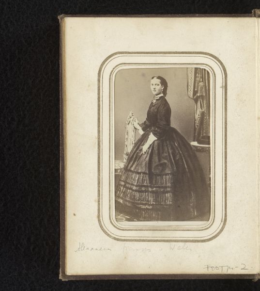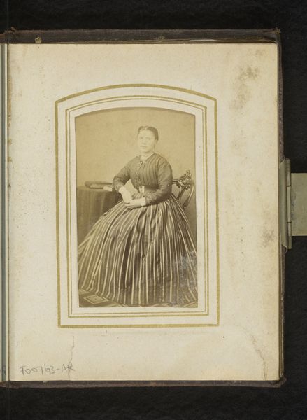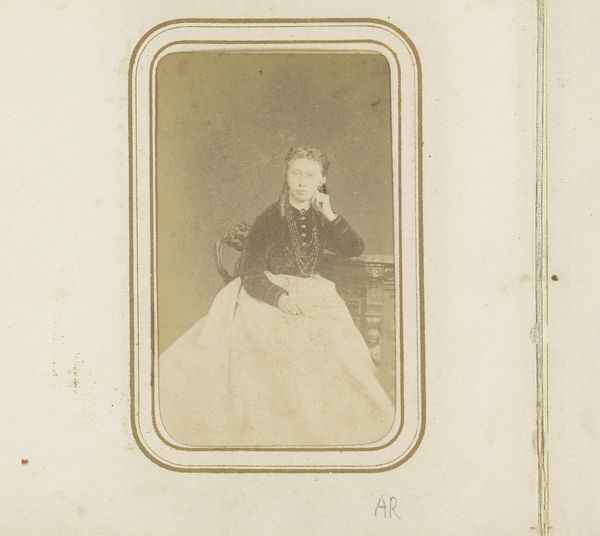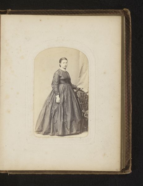 Paul Maujean made this photograph of a girl, standing by a chair, sometime in the mid-19th century. The girl's dress and pose are indicative of the strict social codes that governed female representation at the time. Made in France, the carte-de-visite, of which this photograph is an example, emerged as a popular format in the 1850s. The rise of photography coincided with a growing middle class, eager to participate in the visual culture. These small portraits became a means of social exchange, often collected and displayed in albums, demonstrating social connections and status. The carefully constructed setting, complete with draped curtain, provides a backdrop that alludes to the sitter's social position. To fully understand this image, we might research the history of photography, portraiture conventions, and the social history of 19th-century France. It's through such research that we uncover the complex social and cultural values embedded within it.