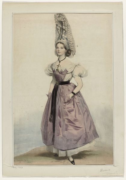 Editor: Here we have "A Portrait of a Woman in a Bonnet with a Pink Ribbon," a watercolor piece created in 1837 by Alexander Clarot. The delicate use of color creates such a soft, almost dreamlike effect. What can you tell me about it? Curator: I am struck by the materials on display here: the bonnet, the shawl, the very construction of the dress. Look closely. It's not simply a representation of wealth, but an exhibition of production. Think of the labor involved in creating the lace of that bonnet, the weaving of the fabric, and even the extraction and preparation of the pigments used for the watercolor itself. How does understanding the processes alter our perception? Editor: I hadn't thought of it that way before, but it's true! Knowing that each delicate detail involved specialized skills and time really shifts the focus. Instead of just seeing a portrait of a lady, I see all of these different layers of craftsmanship. Curator: Precisely! And consider the social context. Portraiture in this era served as a means of displaying status, but it also acted as a form of consumption. Owning and commissioning art demonstrated not just financial means, but access to a specific cultural sphere. The artist provides a service using acquired material, can we talk about agency in this piece? Editor: It’s fascinating to consider this portrait not just as art, but also as a commodity, reflective of production methods and status displays. Does understanding these processes enhance your personal enjoyment of the artwork? Curator: Understanding the means of creation inevitably adds another layer to my experience. To me, it enriches the image with narratives of labor and social interaction. Editor: I will definitely look at art differently going forward.