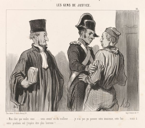 Honoré Daumier created this lithograph as part of his series "La Comète de 1857". He used it to satirize French society's reaction to the widely predicted, but ultimately non-existent, end of the world. Daumier was a master of social commentary. Here, he uses caricature to highlight the absurdity of human behavior in the face of existential dread. Made in France, the image reflects the anxieties of the time, blending superstition with the emerging capitalist economy. We see a common man refusing to buy a theater ticket, pointing out its expiration date comes after the predicted apocalypse. Daumier's work often appeared in popular journals like "Le Charivari", thus critiquing social norms for a broad audience. To fully grasp the layers of meaning in Daumier’s art, we can turn to sources like contemporary newspapers and political pamphlets that illuminate the cultural climate of 19th-century France. This piece acts as a reminder that art is always in dialogue with its social and institutional context.