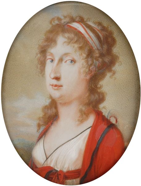 Editor: So, here we have "Snuffbox with portrait of a woman," painted between 1815 and 1825 by Carl Christian Kanz. The detail is amazing! It seems almost frozen in time. There’s something really intimate about it, perhaps it’s the small scale? What jumps out at you when you see this? Curator: Well, first, it's a jewel, isn’t it? So perfectly, almost ridiculously, neoclassical. See how the artist teases the edges of the acceptable. I picture some foppish gentleman pulling it out and, well, taking a sniff. A statement of beauty, wealth, and daring. It makes me think: who was she? Was she aware she’d become an object of this kind? Or was it painted from memory, an act of… almost spiritual possession? The perfect cupid bow lips hint at something unspoken. It seems far more intimate and knowing than other decorative arts. Does that resonate? Editor: That's a perspective I hadn't considered. The idea of 'spiritual possession' through art is really fascinating. You've made me question the power dynamics at play here. Curator: Power dynamics, yes! It makes me want to trace the artist’s hands on this portrait. Think about the layers of artistic creation. From the woman to Kanz, the painter, to its patron. And what exactly was his desire? We might as well try to understand the wind or why dogs bark at the mailman, right? Editor: (Laughing) Right! It sounds incredibly complex. Thank you. I will certainly carry that away and use that thought on my next visit to this Gallery. Curator: My pleasure. It's a tiny, beautiful rabbit hole, and I could fall in with the greatest of ease, forever.