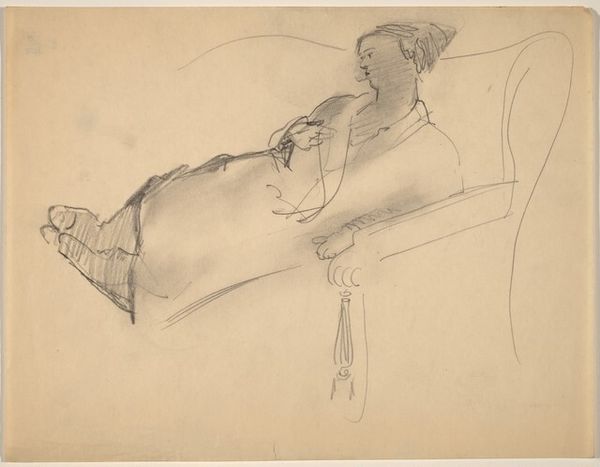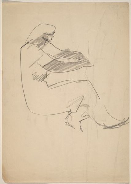 Curator: Let’s discuss this sketch titled “Seated Figure Reading.” It appears to be a pencil or graphite drawing, featuring a figure engaged in reading. Editor: It’s surprisingly dynamic for what I’d expect from a simple portrait. The loose linework creates a sense of movement, like the figure is shifting slightly in their seat as they read. There’s an intimate feeling. Curator: Absolutely. The composition itself is rather intriguing. The figure occupies a large portion of the picture plane, drawing our immediate attention. But then, note the economical use of line to define form. Observe how the repeated gestures build a complex structural form and internal rhythm, creating depth. The reading material is depicted frontally as if presented for inspection. Editor: It almost has the feel of a political cartoon or a statement piece, like a commentary on literacy or perhaps a particular reader demographic. Who do you think this figure is and what do you think they’re reading? The subject's engagement is also notable given debates around who has access to reading materials and freedom of information in the context of art and social movements. Curator: We can only speculate about their reading material or their identity. But if we shift focus from the “what” to the “how,” the emphasis lands firmly on the artistic process. The visible construction of the image—the layering of lines, the visible erasures—all highlight Rothko’s focus on capturing a fleeting moment. We must concede the drawing is ultimately an object that exposes artifice in order to create an impression, that is what Rothko seemed preoccupied with at this time. Editor: Yet, there's an inescapable power in the representation of the reader, particularly considering historical restrictions on literacy. Doesn’t art of figuration reflect not only aesthetic goals, but also, cultural commentary of gender, class, or liberation from political and social constructs. The subject of someone immersed in learning immediately evokes notions of personal and potentially societal transformation. What the person chooses to read determines their relationship to civic participation. Curator: True, but it does return us to the problem that is the very absence of contextual cues that make your interpretations entirely presumptive, whereas close inspection provides demonstrable claims and the recognition of art production. Editor: But that very “absence” is significant. It pushes us to question: what reading is this and where? What does this open ended depiction mean to contemporary debates surrounding educational and literary freedoms? It beckons viewers to insert themselves into the narrative. Curator: Indeed, “Seated Figure Reading” seems deceptively simple. In the end, both formal inspection and context contribute meaningfully to the interpretive experience. Editor: Agreed, whether appreciating it as a demonstration in aesthetic or engagement, Rothko invites consideration.