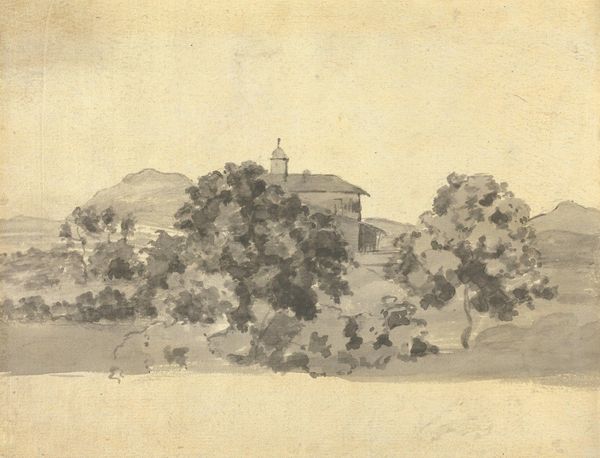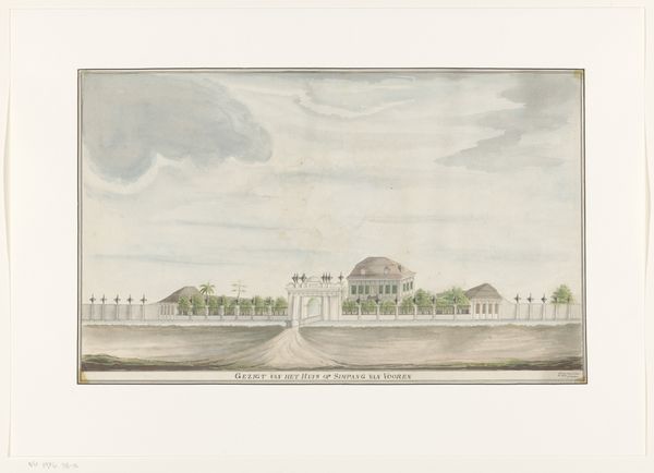 Editor: Here we have Gerrit Schouten's "Diorama of Government Square in Paramaribo," created around 1812 using watercolors. I find it incredibly charming. The whole scene is constructed within this box, creating such a unique sense of depth and perspective. What stands out to you? Curator: The diorama is indeed captivating, and its construction invites a close analysis of its visual elements. I'm particularly struck by the interplay between the foreground and background. Note how the artist meticulously layers the composition. The detailed architecture of the government building provides a strong grounding in the immediate space, while the gradual recession into the hazy backdrop creates an illusion of vastness. Editor: It's interesting you focus on that. I hadn’t thought much about it beyond thinking the background helped make it feel like an open landscape. Curator: Precisely. And what do you observe about the artist's handling of light and shadow? Consider the effect it has on the overall atmosphere of the scene. Notice the variations in tone and how they contribute to the perceived solidity of the buildings and the textural qualities of the foliage. Editor: I guess I hadn’t looked beyond noticing that the building looks like it's painted with neutral colors. Now that you mention it, the shadows around the figures give them such life and form. So, by observing color tones we can understand the composition in a new way? Curator: Indeed. It's through such analysis that we uncover the formal strategies employed by the artist, which in turn informs our understanding of the artwork's expressive potential. By focusing on formal relationships, a diorama made with watercolors, paper, and wood becomes a complex exercise in representational form. Editor: I see. Paying closer attention to structure has deepened my appreciation. Curator: Mine too. Considering the formal language elevates the viewing experience.