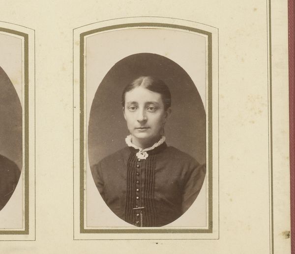 Curator: Looking at this, I feel a profound sense of constraint and a subtle defiance, all captured in the subject's gaze. Editor: This is a gelatin-silver print, a photograph taken sometime between 1865 and 1895, attributed to Thomas Martin Staas. It's titled “Portret van een jonge vrouw”—Portrait of a Young Woman. The composition is fairly typical for the period. Curator: It's more than typical; it’s representative of the stifling societal expectations placed on women during this era. Her attire, her composed expression, they speak volumes about the performance of femininity and the limitations imposed by patriarchal structures. Do you see a lack of agency in this pose? Editor: I see both limitation and access. Portraiture democratized visibility. Middle class members would utilize photography in ways that previously would have only been afforded to the wealthy, specifically with painted portraiture. There is something intrinsically humanizing about her direct, even, gaze, however sober. Curator: But is she really seen, or is she performing the expected image of docile womanhood? Photography in the 19th century often reinforced power dynamics and class structures, manipulating the idea of gender through posture. Does that buttoned up top allow her a real position of power? Or does it limit her. Editor: We're both projecting onto this historical image based on the access we now have to intersectional conversations that are very present now, in 2024. Curator: And that is entirely necessary. Looking at historical objects with contemporary theory provides meaningful insight. To deny an object’s capacity to lend itself to cultural relevance, historical relevance, is negligent. Do we truly value objects by taking them at face value, historically, rather than contextualizing it within present ideas? Editor: It presents more questions than it answers, to be certain. The power dynamics in photographic portraits are rarely simple, or immediately legible across a gap of almost two centuries. Thank you for the opportunity to examine it through new perspectives. Curator: Of course, thank you as well. These types of dialogue only work through both present context and historical framing. It's the necessary marriage to keep our conversations, and our objects, relevant.