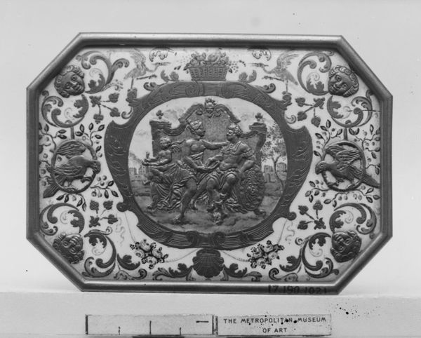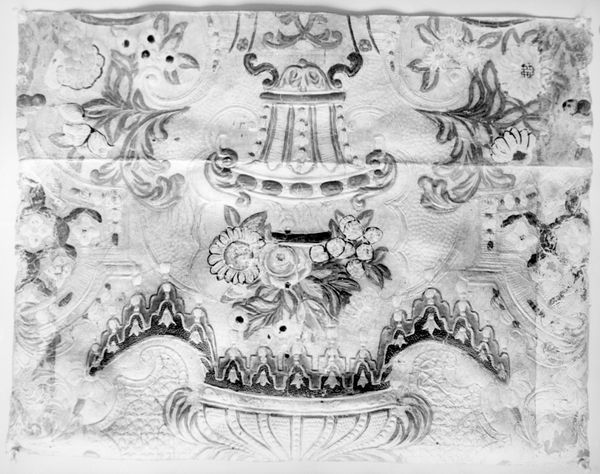Editor: So, this is a fragment of a wall hanging, likely woven, created between 1700 and 1725 by Daniel Marot the Elder. It’s hard to ignore all the ornate Baroque detailing – so evocative of the period's opulence. How do you see this fragment fitting into the decorative arts of its time? Curator: This piece, while seemingly just decorative, speaks volumes about the society that produced it. Wall hangings like these were far more than mere decoration. They were powerful status symbols, signifying wealth and taste. Editor: Like visual real estate? Curator: Exactly! Think about the Baroque era – a time of absolute monarchs and powerful elites. Art wasn’t just art; it was a tool for projecting power. Marot’s designs, disseminated through engravings, shaped interior design across Europe. Do you notice how this piece, even in fragment form, suggests an expansive, perhaps even overwhelming, design scheme? Editor: Now that you mention it, the way the floral arrangements, vases, and crown-like figures repeat really emphasize… almost an endlessness, like it was meant to fill a whole room. Curator: Precisely. Consider, too, who commissioned such pieces and why. It would likely have been an aristocratic family looking to create a specific impression within their social circles, sending a clear signal of dominance. Editor: So the fragment reminds us how art, even something "decorative," functioned in a specific social context. Fascinating! Curator: It truly does, offering a tangible connection to the socio-political forces that shaped the lives of both artist and patron. What initially appears as surface ornamentation in fact illustrates profound historical relationships.