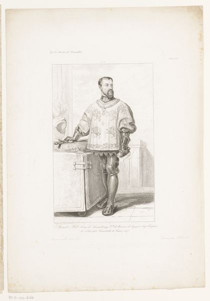 Curator: Welcome. We’re looking at a portrait of Alexander Gabriel Descamps, created in 1853 by Paul Gavarni. It’s an engraving, a type of print. Editor: Oh, immediately, there's something so...dignified and slightly melancholy about him. The way he’s holding that little book, almost like a shield, gives me pause. I wonder what was he reading at the time? Curator: Engravings like this were fairly common. Portraits were essential for constructing and solidifying social identity, especially in the 19th century. The original would have been reproduced and distributed widely. Think of it as the Instagram of its day, circulating a carefully constructed image. Editor: "Instagram of its day"—I love that. This image presents such a considered vision. Is it just me or do the elaborate details, like his garments, feel intentionally crafted to suggest refinement? Like stage dressing? Curator: Yes, his clothing reflects the Romantic movement's interest in portraying powerful individuals, very carefully, but there's more to it. He's presenting himself as a cultivated man of letters, which served the public and his personal brand in society. Editor: The background has an almost blurred quality to it, compared to Descamps himself. Intentionally putting more focus on the subject. A very romantic focus. It makes the moment dream-like. Curator: It focuses on *him* while keeping his setting slightly abstract. It's Romantic, definitely, but also shrewd—all portraits serve a specific political and social agenda. The style choices say so much. Editor: What strikes me is how we, today, are still carefully curating our images through social media; in effect are still participating in the same play from two centuries ago. We have just updated our toolkit. Curator: That’s absolutely right! From engravings to Instagram, it’s still image circulation with power. Editor: That parallel makes me appreciate the timeless element in this print even more. The longing, the quiet posing, its oddly familiar. Thanks for shedding some light on this. Curator: Indeed, and for helping connect us across the centuries!