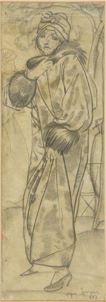 This sketch, "Girl," was made by Winslow Homer, who lived from 1836 to 1910, using graphite on paper. The qualities of graphite – its powdery darkness and capacity to capture light – give this drawing its subtle power. Note how Homer uses the side of the graphite stick to create tone, especially in the girl's skirt and in the tree overhead. There’s a directness to the mark-making that gives immediacy to the work. The artist’s skill lies not only in his capacity to translate a three-dimensional form onto a two-dimensional plane, but also in the sheer amount of labor expended. Homer skillfully renders the textures of the girl's clothing. By emphasizing the materiality and the making of this work, we see its significance extending beyond a mere depiction, challenging traditional notions of high art and craft.