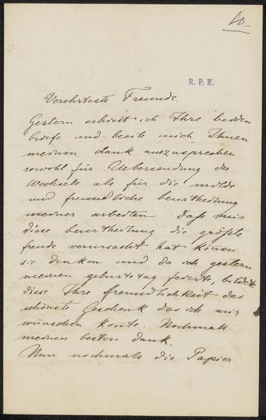This is "Brief aan Filippo Tessaro" (Letter to Filippo Tessaro) by William Unger, created in 1875, and now held at the Rijksmuseum. The letter offers a glimpse into the intimate world of 19th-century correspondence and the emotional landscape of its author. Unger's delicate script carries the weight of personal connection. The letter hints at themes of longing and belonging, as he anticipates reuniting with friends, while also wrestling with the bittersweet pangs of separation from home. The mention of "Geneves Murajas" and "Samitic Caramelli" situates the letter within a cultural context of shared experiences and affections. As we consider the historical period, the act of letter-writing itself becomes a poignant reminder of a time when distance and communication were mediated by handwritten words. The letter invites us to reflect on the value of human connection and the emotional nuances embedded within the written word.