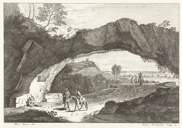 Giuliano Giampiccoli made this print – *Landschap met twee herders en vee bij water* – using etching and engraving. These are intaglio techniques, meaning the lines you see were cut into a metal plate, which was then inked and printed. The real skill here lies in the artist’s control of the burin, the tool used for engraving. Notice how Giampiccoli varies the depth and thickness of the lines to create a sense of light and shadow, and to describe the textures of the landscape. He creates the illusion of depth through carefully placed lines, and varying the pressure on the tool. The contrast between the crisp, precise lines of the engraving and the more fluid lines of the etching creates a dynamic and engaging composition, depicting a pastoral scene with shepherds and cattle. This kind of printmaking was labor-intensive, demanding both artistic skill and technical expertise. By appreciating the craft involved, we gain a deeper understanding of the image itself, and the cultural values embedded in its production.