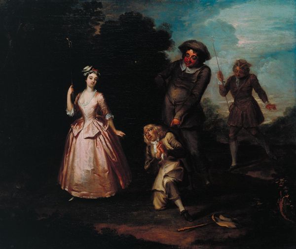 This is Johann Zoffany's painting of "The Lavie Children." At its heart is the symbol of play, embodied by the seesaw. This is not mere child's play, but rather a metaphor for the delicate balance of life itself. The seesaw – a simple lever – brings to mind the scales of justice, a motif found in ancient Egyptian art depicting the weighing of the heart against the feather of Maat. Just as in the "Book of the Dead", here too, we confront the balance between earthly pleasures and the weight of existence. The boy triumphantly raising his hat evokes images of Fortuna, the Roman goddess of fortune, whose capricious nature is reflected in the seesaw's precarious equilibrium. Notice, how the uncontained, unbridled joy of the children, is a primal expression of the human spirit – a Dionysian celebration of life's fleeting moments. The image captures a cyclical rhythm of exuberance and uncertainty. The artist reminds us that life, much like the seesaw, is in constant flux. We see the echoes of past joys, and the anticipation of future delights.