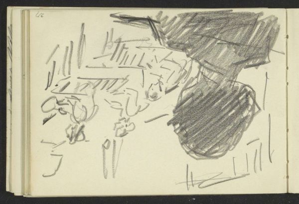Pyotr Konchalovsky created this still life on paper using graphite. In this drawing, the material's properties of darkness, lightness, and texture take center stage, as the artist is working within a tradition that values capturing three-dimensional form on a two-dimensional surface. It seems that the artist’s hand moved quickly, making marks that suggest, rather than meticulously define, edges. The quickness of mark-making demonstrates the artist’s confidence and mastery in drawing techniques. But it also suggests a mindset in which art is more about the process and the experience, than the finished product. The table and objects rendered with sparse lines show Konchalovsky's engagement with the modernist idea of abstraction. He is not so concerned with capturing the exact likeness of objects, but more interested in evoking their essence and the interplay of light and shadow. This approach challenges the conventional boundaries between observation and interpretation.