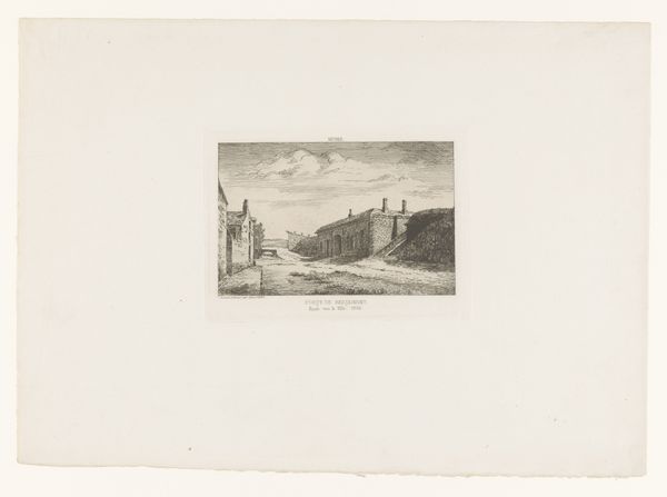 Editor: So, this is a print titled "Gezicht op Agher Castle," possibly from 1791. It's by an anonymous artist, done with etching and engraving on paper. The first thing that strikes me is how serene yet slightly haunting it is. What do you see in this piece, Professor? Curator: I'm immediately drawn to how this image captures a sense of cultural memory. Castles, in and of themselves, are potent symbols of power, history, and often, conflict. Notice how the artist hasn't romanticized it? The etching conveys a starkness. Consider the psychological weight of such structures - they can represent both safety and oppression. Do you think that ambiguity is present here? Editor: I do. There’s a vulnerability too, almost like it’s a memory fading. The light-colored paper adds to that sense of distance. The people in the foreground seem small and insignificant compared to the imposing structure. Does that amplify the power dynamic? Curator: Precisely. That contrast can evoke feelings of awe, or perhaps even a sense of being dwarfed by the past. Etchings, particularly landscapes, served as records and sometimes political statements. Given that Agher Castle is in Ireland, and considering the historical context of 1791, could this image be a subtle commentary on British rule? What kind of collective identity may emerge through images of Irish landscapes? Editor: That's fascinating, I hadn’t considered that. It makes you wonder what the artist intended to communicate about power, history, and cultural identity, perhaps even resistance through the act of remembering. Curator: Exactly. The act of depicting and preserving, especially within the context of cultural conflict, carries its own inherent power. These visual symbols carry such meaning that resonates throughout our history. Editor: I see the castle and the etching as holding a shared narrative and symbolic language. Thanks for unlocking those layers for me! Curator: It's in considering such elements that art truly speaks.
