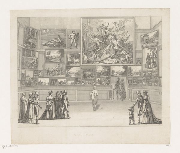 Curator: This engraving, "Boekdrukkerswerkplaats" or "Printing Workshop" by Abraham van Weerdt, gives us a peek into the world of 17th-century Dutch printing. Dating to 1676, it illustrates the environment of a book printer, revealing details of their business. Editor: My first thought? A symphony of industry! The composition bustles, pulling you in with details. Every surface seems to hold tools and tasks, capturing the atmosphere of a hive of creation. Curator: Precisely! And printing was indeed becoming an increasingly vital trade. Think about the context—the Dutch Golden Age saw a flourishing of intellectual and mercantile activity, much of which depended on disseminating knowledge and conducting business widely, things enabled by printed materials. Editor: Visually, the engraving is more than just documentation; note the details of the symbols placed high up in the room. Above one station is the mythical Griffin, on the other side is an eagle clutching a symbol. Such choices elevated the work beyond mere recording to something more allusive. Do we know who commissioned this work? Curator: While we lack explicit documentation on that point, these sorts of interior scenes were becoming popular. Workshop depictions signaled pride in production, contributing to a sense of shared culture and civic identity. As a professional engraver and printmaker, Van Weerdt, through works like this, likely found a solid customer base who valued accurate workshop depictions. Editor: I also can’t help but consider the open windows overlooking a skyline. Van Weerdt uses light to create depth, suggesting intellectual horizons. Note the light falling across the workshop, suggesting knowledge coming to the light. Is this an accident or an insight? Curator: More likely, Van Weerdt recognized how depictions like this played an important role in constructing cultural meaning during the Dutch Golden Age. So much was developing in the country, and this print participates in that project, revealing the printing workshop as an emblem of national, mercantile pride. Editor: So, this seemingly mundane scene of a printer's workshop is revealed to be layered, offering much about commercial practices, cultural symbols, and the politics of production! Curator: Indeed, it encourages a deep understanding of not only Dutch printmaking but the country itself, at a crucial period of political, commercial, and cultural expansion.