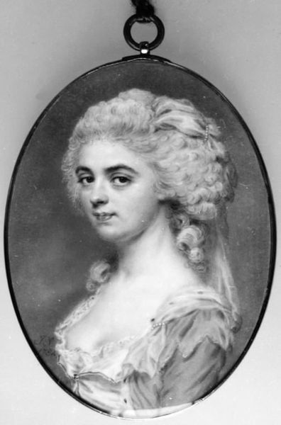 Curator: This small tempera painting, titled "Ubekendt dame," is attributed to W.A. Müller and dates from 1748 to 1816. It resides here at the SMK, the National Gallery of Denmark. Editor: Ah, a monochrome miniature. She’s giving me wistful vibes, like she's eternally waiting for a love letter. It's almost ghostly, you know? Like a faded memory. Curator: Yes, there’s an ethereal quality to it. Tempera lends itself to that soft, almost dreamlike texture. Given its dating and style, this piece sits firmly within the neoclassical movement, a period heavily influenced by Enlightenment ideals of reason and order, yet it also flirts with Romanticism's sensibility. What resonates is this tension between intellectual restraint and burgeoning emotional expression. Editor: Restraint is definitely the word. Look at her gaze— reserved, almost demure, but with a glint of something, mischief perhaps, lurking beneath the surface. I wonder about the social constraints she may have been facing while having the painting made. Did that inform her look or the hand of the artist? And the color...It is an intentional removal of color, a move into shades rather than pigment. What does that do? Curator: Indeed. Consider the act of commissioning such a piece at this time. Portrait miniatures were often exchanged amongst family or potential suitors. This painting presents fascinating intersectional narratives regarding femininity, agency, and societal expectations. Also, it appears to be more likely an unfinished work rather than monochrome intentionality. Tempera may be applied in monochrome washes, but not solely so. Editor: Ah, I find that insight fascinating. She's an enigma. Like an unfinished thought or an unheard melody that trails off into the past. Makes me wonder if there's a ghost of color longing to come out, you know? What became of the model? And was the painting ever complete? I hope she received her love letter. Curator: Indeed, it adds layers to the narrative. We see here not only artistic talent, but also echoes of untold stories and complex socio-political landscapes that continue to spark the imagination. Editor: Beautifully said! Let's leave her with a bit of her mystery intact, shall we? Let people invent their own love letters for her, and speculate on her hues.