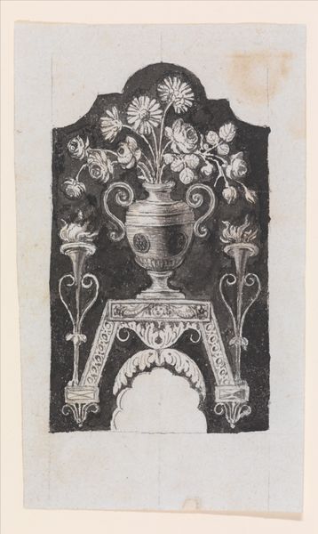 Léon Davent created this print, "Speculum Romanae Magnificentiae: Capital of Composite Order," during the mid-16th century. The artwork immediately strikes you with its intricate detailing achieved through the etched lines, presenting a study in contrasts between light and shadow that articulate the complex forms of the capital. Davent meticulously renders the composite order, drawing attention to its layered composition. The acanthus leaves at the base, volutes, and the ornamented abacus are presented with a graphic clarity which serves not only to document but also to idealize classical architecture. This emphasis on structure and form aligns the artwork with the period's broader interest in reviving and codifying classical orders. The stark contrast between the detailed capital and the bare background focuses our attention on the capital's inherent structure. The print functions as a semiotic device, using visual elements to convey the cultural codes and values associated with classical architecture. It transforms architectural elements into signs of sophistication and cultural authority. This print invites us to interpret the interplay between artistic representation and cultural values inherent in classical forms.