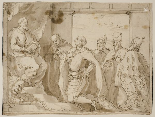 Hubert François Bourguignon Gravelot created this etching, A Painter's Studio. The composition is a dance of lines and textures, pulling us into the intimate space of artistic creation. The diagonal lines of the tiled floor meet with the vertical strokes defining walls and figures. The light etches the scene, casting shadows that give depth to the otherwise sparse rendering. Note the strategic use of the etching technique. Gravelot doesn't aim for photorealistic representation. Instead, through a network of intersecting lines, he suggests form, texture, and light. The artist challenges traditional notions of representation, inviting us to consider the creative process itself as the subject. The etching’s linear abstraction destabilizes our expectations. It encourages us to contemplate how Gravelot's art challenges fixed meanings and invites continuous re-interpretation.