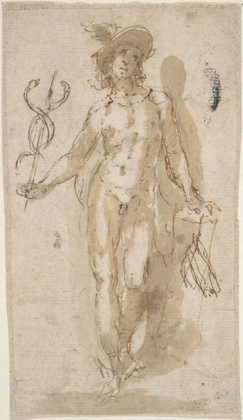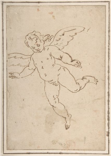 Editor: So, here we have "Cupid Tied to a Tree," created between 1570 and 1599 by Giorgio Picchi. It’s a drawing made with pen, ink, chalk, and pencil on paper, and it's currently residing at The Art Institute of Chicago. The Cupid figure almost appears like a sculptural maquette rendered in delicate lines, it’s quite intriguing. What stands out to you the most? Curator: I'm struck by the overt display of labor in this piece. Look closely. The materiality of chalk, pen, and ink, deliberately laid on the paper. Notice also that each element declares its presence; the process of creation becomes paramount, doesn’t it? This challenges typical notions of Renaissance drawings as solely preparatory for a finished artwork, wouldn’t you agree? Editor: Yes, it’s almost as if the labor is the point. Do you think the relatively "rough" look challenges established hierarchies, elevating drawing beyond mere preparatory work? Curator: Exactly! Think about the materials available to Picchi – where did the chalk and ink come from? Who processed these raw materials, and what was their social status? Further, consider the patronage system that commissioned and consumed such works, transforming the "erotic" cupid into a coveted commodity. How does that inform your view? Editor: It does shift my perspective! Seeing it as part of a wider production chain gives me so much more to consider. I focused on the individual image at first. Curator: Precisely! The drawing represents not only Picchi’s hand, but the convergence of resources, labor, and societal structures which gave form to this Cupid. Editor: It's fascinating to consider artmaking as an integrated activity, bound to a whole system of making and selling. It gives the artwork a much larger context and social life than I originally considered. Curator: Agreed! Recognizing these interconnections lets us read this Cupid not only as symbol, but as product of a complex world of things, labour, and desire.