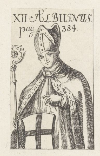 Curator: Here we have Bernard Picart’s 1713 engraving, "Portrait of Antipope John XXIII," currently held in the Rijksmuseum collection. Editor: My eye is immediately drawn to the contrasting textures: the crisp, refined lines of the portrait itself versus the almost chaotic jumble of objects at the bottom. Curator: Picart's meticulous engraving work certainly emphasizes the social position of John XXIII. Consider the material implications – the time, skill, and resources required to create such a detailed print. It’s not merely an image; it's a product of significant labor. Editor: Indeed, but beyond that, note the visual language Picart employs. Chains, a tipped-over mitre, a bird perched atop keys – symbols of imprisonment, lost authority, and perhaps a false prophet guarding secrets. Curator: That interplay of signifiers adds a layer of commentary, agreed. But I also find it revealing to think about how the print functioned as a reproducible commodity. Who was it made for? Who could afford it? What ideas was it propagating through its circulation? Editor: Definitely an interesting point of view. To me, though, the real weight is in those symbolic choices. The fallen mitre, for example, speaks volumes about the contested legitimacy of John XXIII's papacy during the Western Schism. The imagery builds a narrative. Curator: True, but without the printing press – without the dissemination facilitated by material processes – those symbols would have remained much more limited in their reach and their influence. The means of production are integral to their cultural power. Editor: Fair enough. I appreciate that perspective – it’s about how the physical object carries symbolic weight. It urges us to think about the practical implications of creating and consuming images, something we often overlook. Curator: Exactly. It underscores how artistic choices are interwoven with the broader economic and social structures of the time. Seeing beyond the symbolic value reveals the network of forces shaping both the artwork and the society it reflects. Editor: Thanks to the chains that bind this artpiece, both materially and culturally!