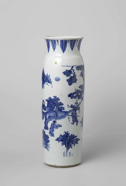This porcelain sleeve vase, decorated in underglaze blue, was made in China, although we don't know exactly when. The decoration depicts a scene of figures in a landscape, and these provide a fascinating glimpse into the social and cultural values of the time. The imagery on the vase reflects the sophisticated culture of the Chinese elite. We see scholars and attendants amidst stylized mountains, trees, and streams, all rendered in a delicate blue and white palette. These scenes are often inspired by classical literature, theater, and folklore, reflecting the importance of education, artistry, and storytelling. Objects like this vase were produced on an industrial scale in the great porcelain center of Jingdezhen, both for use in China and for export around the world. The scale of this industry and the global demand for Chinese porcelain tell us something about the economic structures of the time. They also underscore the ways in which art and culture are intertwined with trade, power, and cultural exchange. Understanding the vase fully requires research into the visual culture of the era. What stories were popular? How did elites wish to represent themselves? The answers to these questions, found in textual and visual archives, can open up whole worlds of meaning.