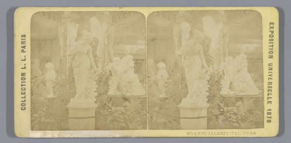 Editor: This gelatin-silver print from between 1855 and 1875 depicts the marble grave monument of Louis Charles of Orléans in Malta. It strikes me as very formal and somber. How do you interpret this work in the context of its time? Curator: It's a poignant reminder of how power structures influence even the ways we memorialize the dead. This image, presented as a stereograph, would have been consumed within a very specific cultural and political framework. How does the photographic reproduction of the marble monument impact its message, compared to experiencing the sculpture directly? Editor: That’s interesting. I hadn’t considered the reproduction aspect. The photograph seems to flatten the power dynamic, making it more accessible, while perhaps diminishing the intended awe. Curator: Exactly! This democratization of imagery, even of aristocratic iconography, occurred alongside shifts in social and political consciousness. Consider the context: Louis Charles, a member of the French aristocracy, memorialized in Malta, a location rife with colonial history. How do you see those layered contexts interacting in this image? Does it make you consider issues of class and imperialism? Editor: Yes, definitely. It highlights the pervasiveness of European power at that time, physically and symbolically. The choice to immortalize him in marble, and then further disseminate it through photography, reinforces a specific narrative. Curator: And who controls that narrative? That's a critical question. The act of photographing itself is an assertion of control, framing our understanding. Now, think about who this stereograph was marketed to? Editor: Likely the middle class, seeking to consume culture and knowledge. It really brings forward the problematic reality of profiting from even commemorating the deceased. Curator: Precisely. It's a lens through which we can analyze how even grief and remembrance become commodified and entangled with larger societal structures. Editor: I hadn't considered how the photographic medium itself could be a tool for solidifying power dynamics and disseminating particular narratives. Thanks, this was illuminating.