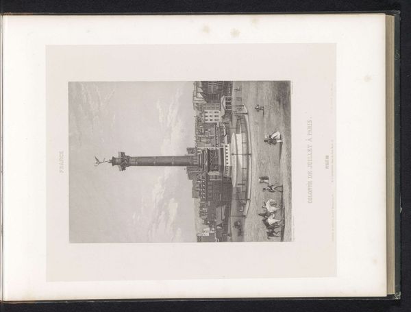 Editor: This is "View of Pompey's Pillar in Alexandria" by Friedrich Salathé, an etching from before 1841. It’s…strikingly sparse. Just a single column dominating the landscape. What do you see in this piece, beyond the obvious grandeur? Curator: Oh, beyond the grandeur? Everything! For me, it’s about what isn't there as much as what is. It’s a conversation, see? Between this impossibly enduring structure – Pompey's Pillar, though technically not his – and the ephemeral figures at its base. They're like punctuation marks in the face of eternity, wouldn’t you say? Little dashes hinting at life's fleeting quality. Editor: I see what you mean. The riders and walkers almost seem incidental, even though they’re the only real sign of life. Did Salathé do much work like this, with these contrasts between monuments and the everyday? Curator: He played with neoclassicism throughout his career, you can see its trace here too. To me this particular piece whispers of a quiet contemplation. This piece evokes nostalgia, curiosity and grandeur – an exploration of time and the human condition using architecture as a powerful statement of humankind's legacy. Like looking back at humanity’s great architectural attempts over millennia. Editor: So, it's not just about documenting the column, it's about the bigger picture…time and legacy? Curator: Precisely! We're invited to muse about permanence versus impermanence; empires built and crumbled, cultures flourished and disappeared - life continues its merry dance. In this context, a column may look still, silent, strong… but that silence can be broken by any horse. Editor: I hadn’t really considered all that, but I’m finding a new appreciation now. Thanks! Curator: Absolutely, anytime! That is what good art does, shows you, touches you and keeps asking "and…?" even if the piece itself looks completely quiet.