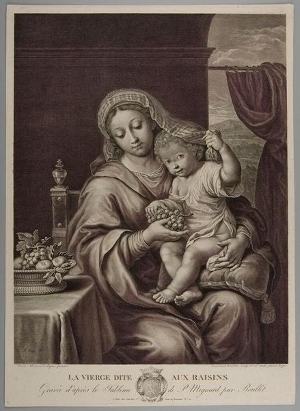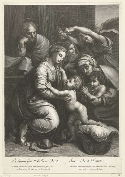 Editor: We are looking at Gérard Edelinck's "La Couseuse" from the Harvard Art Museums. The scene feels so serene, like a sacred moment. What historical context informs its creation and reception? Curator: Considering the engraving likely circulated among a broad audience, it's interesting to note the emphasis on domestic virtue. How does this idealized portrayal of labor and piety function within the social fabric of 17th-century Europe, particularly regarding the role of women and religious iconography? Editor: So, it reflects societal expectations through art? Curator: Precisely. Its public role was to reinforce specific values, subtly shaping perceptions of ideal womanhood and devotion. What is your take away from this piece? Editor: I see how art becomes a mirror and a shaper of society. Curator: Indeed. Reflecting on this piece, we see how deeply intertwined art, culture, and power truly are.