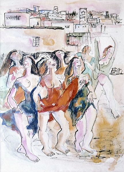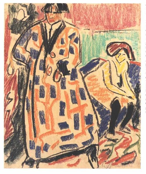 Editor: Here we have "Two Women at a Couch" by Ernst Ludwig Kirchner, it's an oil painting that feels quite intimate, almost voyeuristic. I’m struck by how the colors, though vibrant, create a sense of unease. What's your take on it? Curator: Well, considering Kirchner's work in the context of German Expressionism, it’s impossible to ignore the social commentary. This piece, and others like it, often depicted women in ways that reflected anxieties about urban life and changing gender roles at the time. Do you see that unease stemming from a personal experience, or something more culturally pervasive? Editor: I hadn't thought about it that way. The women seem almost disconnected, despite their proximity. Could this disconnectedness reflect societal alienation? Curator: Precisely! And Kirchner’s own biography factors in. He volunteered for military service in WWI, experienced a mental breakdown and was discharged. That upheaval surely colored his portrayal of figures like these. Consider also the settings these figures often occupied – brothels, studios – spaces that held a complex role in representing the socio-political tensions of the time. Does this perspective shift your interpretation? Editor: Definitely. I see it now less as a personal scene, and more as a mirror reflecting a broader societal discomfort and unease, especially around women and their evolving roles. It makes me wonder about Kirchner’s own complicity or critique of these anxieties. Curator: That's a crucial question! Analyzing the artwork alongside Kirchner's biography and the socio-political context encourages us to actively interpret art's intended, received and sometimes unintended functions in the world. Editor: This reframing helps reveal how loaded an seemingly candid depiction can really be, even a portrait such as "Two Women at a Couch". Thank you for that contextual depth! Curator: It's in considering these contextual complexities that we gain a richer, more nuanced understanding.