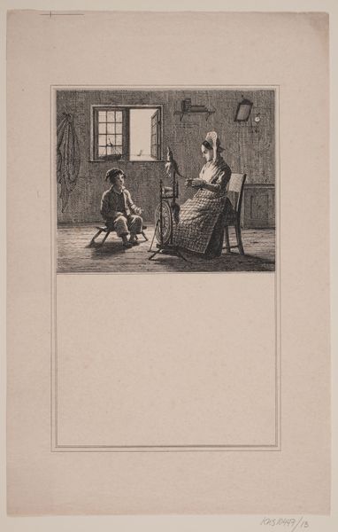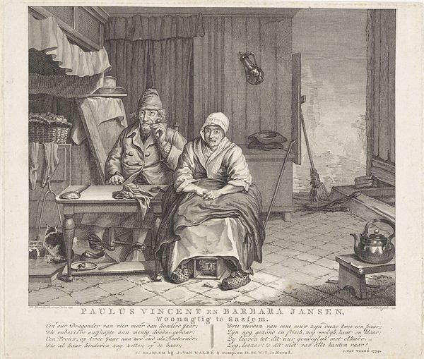 Curator: Let’s take a closer look at "The Letter Writer, Cairo", a watercolor completed by David Roberts sometime between 1846 and 1849. What catches your eye first? Editor: Honestly, it feels a bit like a stage set, doesn’t it? The light, the figures arranged just so... There’s a stillness, a posed quality, that's both intriguing and a little distancing. Curator: Roberts was fascinated by the social customs of the Middle East and it's worth examining that in light of his artistic process here. He worked from sketches and observations he made during his travels, but these were then translated into finished watercolors back in his London studio. Editor: That explains it! It's like a memory of a place filtered through a Western lens. The materiality, though, is quite charming; the sheer rendering of the fabric… almost dreamlike. And that hookah to the man’s right...it's got presence. Curator: Exactly! He was drawing on source images produced via lithography as a means of distributing knowledge of cultures and building political opinions concerning the Ottoman Empire, so the image works almost as propaganda in its distribution. The focus on detail would be an attempt to translate that "truth" of a place. Notice how carefully Roberts renders the architectural details, that geometric patterning along the wall? Editor: It feels like more than just documenting architecture. Look at the positioning. The woman is downcast, seemingly awaiting a pronouncement. While the scribe seems rather official, even though he appears soft. I find their positioning... emotionally symbolic, even though this is, in essence, genre painting. Curator: I agree, and if we return to the idea of distribution, consider the very process of letter writing, who controlled literacy? What was the social infrastructure needed to render such a seemingly mundane, quotidian activity, such as letter-writing into art. Editor: Fascinating. I’m suddenly thinking about the countless untold stories these kinds of genre scenes hint at – lives shaped by global networks, recorded in ink and pigment, commodified as image, presented for consumption. What was once an experience became a mediated symbol? It gives me chills, slightly! Curator: Yes, exactly, in this instance we can better evaluate this watercolour and consider that these kind of depictions contributed to how labour and artistic creation can intertwine.