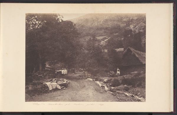Editor: Here we have an untitled photograph from around the 1860s, often called "Wasdale." It's a lovely landscape scene of a stone bridge over a stream. I'm immediately drawn to the quiet stillness of it. What do you see in this piece? Curator: I see the bridge as a powerful symbol, a meeting point, quite literally, but also figuratively. Bridges in art often signify transition, connection between two states of being or points of view. And the water flowing beneath…do you think of that? Editor: Yes, it’s the water—its movement is interesting. How the bridge is fixed and stable and the water is ever changing… Curator: Precisely. Consider also the domestic scene in the background; this emphasizes the human presence interwoven with the landscape. Think about the idea of home, of shelter, existing in harmony, or perhaps in tension, with the natural world. How do those elements speak to you? Editor: I hadn't thought about it that way, but the house definitely gives the image a sense of human scale. It suggests a narrative of human life unfolding against this backdrop. Curator: Yes! And what might that narrative be? Consider, too, how this photograph captures a specific time, but also something timeless. Editor: I suppose that it makes me think of the enduring connection between people and nature, and the search for harmony between the two. I think I see this scene differently now. Curator: Indeed, a photograph of a bridge shows much more than it seems, bridging time itself!