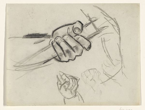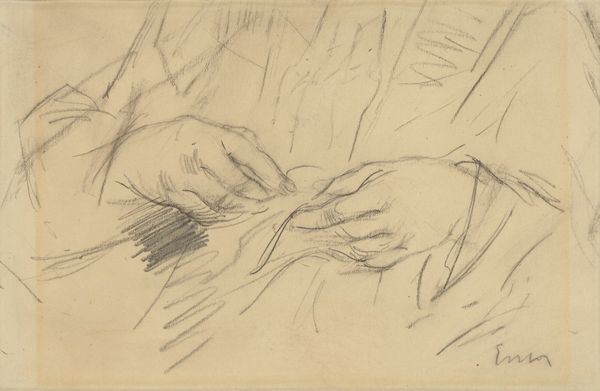 Editor: This is a pencil drawing from sometime between 1852 and 1862. Ingres, Jean-Auguste-Dominique Ingres created "Study of Hands for \"Christ Among the Doctors\"". The realism is striking, but it feels incomplete, like a fragment. What strikes you about these hands? Curator: Hands are fascinating, aren’t they? More than just appendages, they are incredibly symbolic. Ingres captures a moment of contemplation through gesture. Consider how the language of hands differs across cultures and eras. Are they open or closed, gesturing, praying, working? Editor: They do look very deliberate, almost tense. Is that tension symbolic? Curator: Absolutely. Hands speak volumes – literally and figuratively. Here, the strong modeling indicates purpose, power. Think about the historical and religious context: Jesus, a young man confronting religious scholars. Are these hands assertive, or perhaps anxious? Ingres, by focusing on hands, highlights the active discourse in play in the depicted scene. How does Ingres want to highlight the humanity and intent behind these symbolic images? Editor: So, the tension I perceived could reflect the gravity of the situation depicted in the intended painting? Curator: Precisely. And consider Ingres’s academic style: realism is employed, not for its own sake, but to imbue these figures with both immediacy and a timeless quality, an important cultural memory. We see the importance through detailed and realistic rendering of the hands, creating a connection that transcends time. It asks us to reach back. Editor: I didn't realize how much information a simple study of hands could convey! Thanks, it offers an interesting look at Ingres' broader goals for this art. Curator: My pleasure! It’s a beautiful reminder of how artists use even the smallest details to evoke complex ideas and emotional responses.