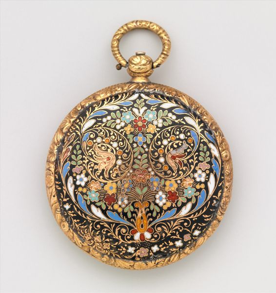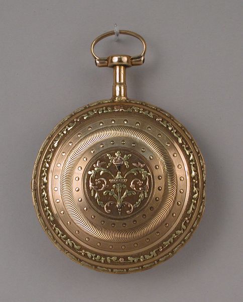 Editor: Here we have Henri Maillardet's "Watch," believed to be crafted between 1810 and 1835. It’s an exquisite object fashioned from gold, brass, and other metals, residing at The Met. It’s intensely ornate; all that decorative detail. How do you read this object? Curator: It’s fascinating to consider this watch through a materialist lens. Beyond its function as a time-telling device, let’s examine its construction and social implications. The materials—gold, brass, meticulously carved—speak to the resources and labor invested in its creation. Editor: The use of precious metals definitely elevates it beyond a purely functional item. Was that typical? Curator: Precisely! It reflects the era's economic landscape and the patron's desire to display wealth and status. We should consider the miners who extracted these metals, the artisans who shaped them, and the social hierarchies that enabled such exquisite objects to exist. Were the makers celebrated artists or anonymous craftspeople? Editor: That's a great point. The sheer detail suggests considerable skill, regardless of the artist's recognition. How do you see the Baroque style influencing its production? Curator: The Baroque aesthetic is certainly evident. This embellishment could be viewed as an ostentatious display of power and wealth but also think about Baroque pushing the material’s limits – metal transformed into near-organic floral relief. Editor: So, is this a blurring of the boundaries, almost a challenging of conventional separation of art and craft? Curator: Indeed. By appreciating the skill, labor, and resources that converged in its creation, we challenge that traditional division. The watch serves as both a functional object and a powerful artifact steeped in economic and social narratives. Editor: Seeing it as an intersection of labor, material, and status shifts my perspective entirely. It's not just a pretty object; it's a microcosm of its time. Curator: Precisely, looking closely at this object through a Materialist point of view expands our insight of its importance beyond telling time.