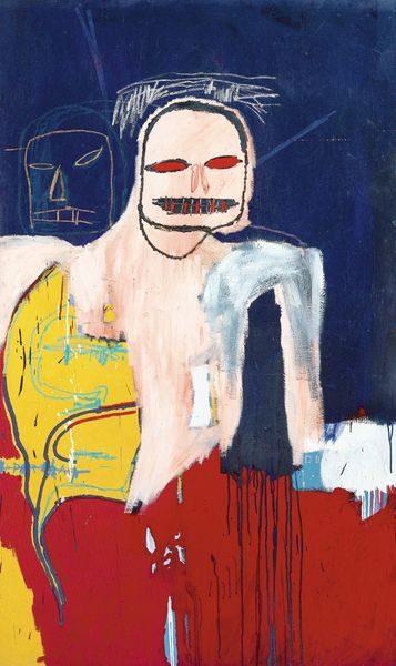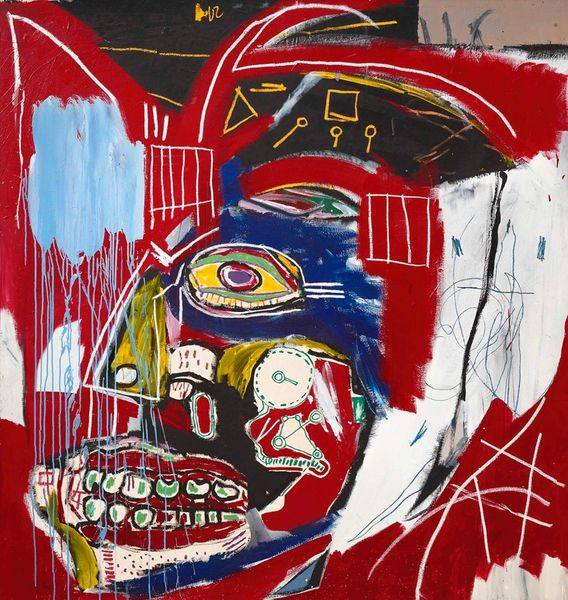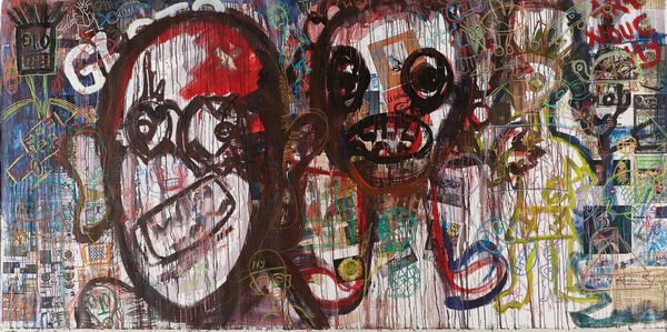 This is Aboudia’s ‘Mother and Child’, rendered with expressive lines over raw canvas. The dominant red is the colour of life, of sacrifice, of blood, of survival. Notice the figures: the mother, central, looming large and surreal, her features exaggerated, almost mask-like, alongside the child, drawn with a raw immediacy and an air of innocence. Similar figures appear in Picasso’s ‘Guernica,’ their wide eyes speak to primal fear and suffering. The faces evoke ancient masks used in rituals from across the globe, from Africa to Oceania, where the mask mediates between the physical and spiritual realms, expressing collective anxieties and hopes. Such images tap into our collective subconscious and the primal emotions connected with nurturing and vulnerability. In the non-linear progression of cultural memory, this recurs throughout art history, reappearing, evolving, and bearing new relevance in each epoch.