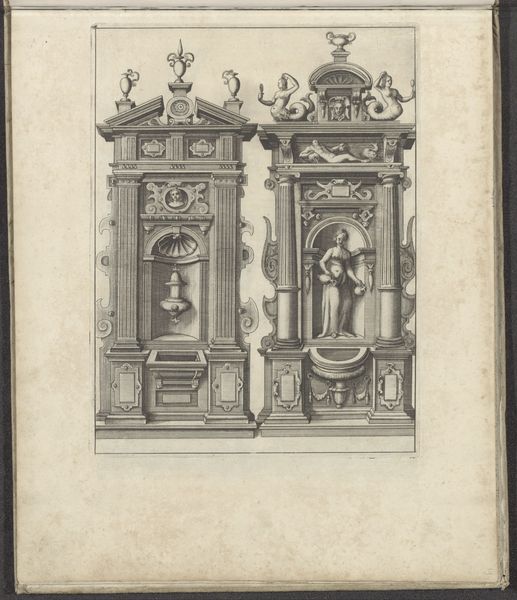 This detailed engraving of Corinthian columns and capitals was created by Johann Christoph Feinlein in the 17th century. Look closely at the acanthus leaves, the most dominant motif. These stylized leaves aren't merely decorative; they symbolize endurance and rebirth, echoing ancient beliefs in nature's cyclical power. These motifs are not confined to Feinlein's time; they've journeyed across millennia. Consider their earlier appearance in Roman temples or even in the friezes of ancient Greece. Over time, the acanthus evolved, embodying not just natural resilience, but also the opulence and grandeur associated with classical architecture. It serves as a potent reminder of our enduring connection to the past. How interesting it is that, across cultures, the image of nature's persistence—its ability to regrow and flourish—resonates so deeply. It taps into a collective hope, a subconscious desire for renewal and continuity.