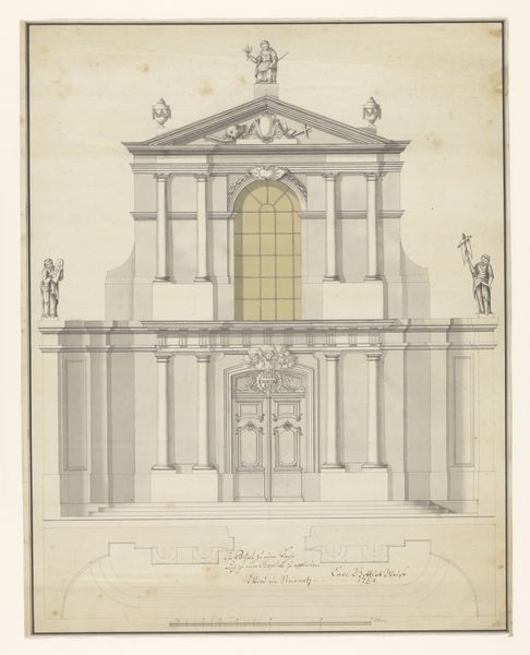Editor: This is "Temple for a Flower Garden," an etching and engraving by Sir John Soane from 1778. It looks like an architect's plan, very precise. What strikes me is how it presents not just the building itself, but also suggests how it fits into a designed landscape. What are your initial thoughts on this work? Curator: My immediate focus shifts to the methods of its production. The etching and engraving, these readily reproducible technologies, speak to a wider dissemination of architectural ideas. Consider how this print form democratizes access to design, moving it beyond the realm of exclusive patronage and artisanal craft. Editor: So, it's not just about the beautiful building itself, but about making its design accessible? Curator: Exactly. The print becomes a commodity, circulated and consumed within a burgeoning market for architectural knowledge. We must examine the role of the publisher, J. Taylor, located in Holborn, a center of print culture. How did this context shape the design and its reception? Editor: I see. Holborn, the publisher... It’s about the labor and distribution involved. Were these types of architectural drawings common at the time? Curator: Precisely. This raises the interesting contradiction inherent in Neoclassicism. Its pursuit of idealized form relied, paradoxically, on industrial methods of production and a society grappling with emerging capitalist structures. The design promotes elite lifestyle through mass produced media. Editor: So it reflects this emerging culture through materiality. I always think about the finished product. But I'm seeing now how the medium is the message, and so much more. Curator: Absolutely. And it encourages us to think critically about the relationship between aesthetics, labor, and consumption. It's all interwoven into art history.