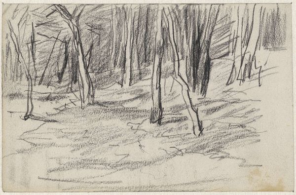 Editor: Here we have "Landscape with Three Trees in the Foreground," a pencil and ink drawing by Poul S. Christiansen, from 1922. It's currently housed at the SMK in Copenhagen. I’m immediately drawn to its simple, almost skeletal quality. It feels like looking at the bones of a landscape. What do you see in this piece? Curator: It is primarily line that structures our apprehension. Note the density of lines defining the three trees in the foreground. Christiansen establishes depth through the controlled reduction of the graphic density as our eye travels to the horizon line. Do you agree? Editor: Yes, I can see how the varying line weights create depth. The trees up front have more detail, while the background fades into a lighter sketch. I wonder why he chose such a sparse composition. Curator: Consider that perhaps it isn’t sparse at all. Rather, the careful rendering of texture on the tree trunks contrasts elegantly with the smoother, less articulated plain. Is the focus then less on representation, and more on the contrasting relationships between these graphic elements themselves? Editor: That's a completely different way of looking at it! Focusing on the relationship between textures rather than just the landscape it depicts… I like that. Curator: It is precisely that visual dynamic which makes the piece so compelling, would you not concur? Editor: Definitely. I initially saw it as a simple landscape sketch, but I now appreciate how the formal elements – the line, texture, and composition – create a more complex and interesting work of art. Curator: Indeed, sometimes what seems simplest is the product of the most rigorous attention to form.