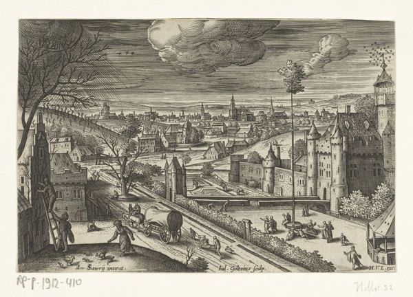Rodolphe Bresdin created "The Church and the Port" in 1864 using etching. Its intricate, almost obsessive detail is immediately striking. The composition, tightly packed and teeming with life, draws us into a world where architecture and nature merge. Bresdin masterfully employs line to create texture and depth. The density of marks across the paper builds a rich tapestry, challenging our perception of space. Look closely at the church, its towering spire dominating the scene, yet almost dissolving into the turbulent sky. This blurring of boundaries might reflect the artist's engagement with Romanticism, which questioned established orders and hierarchies. The church, a symbol of stability, is destabilized, becoming part of a fluid, dynamic landscape. Ultimately, "The Church and the Port" invites us to consider how the formal elements of art can construct meaning. Bresdin's obsessive technique offers a critique of established systems, suggesting that meaning is always in flux.
