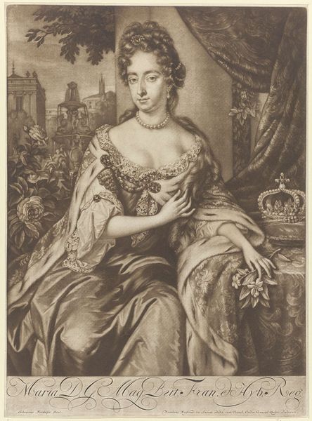 Pieter Schenk created this print of Anna Stuart, Queen of England, most likely in Amsterdam in the late 17th or early 18th century. As a print, it was designed for wide circulation, aimed at an emerging public interested in the British royal family. Anna is depicted as a figure of power and prestige. She is adorned with jewels and lace, and surrounded by symbols of wealth and status. In the background there is what looks like a royal garden. The inscription at the bottom emphasizes her royal status: “Her Royall Highness the Princess Ann of Denmark.” Yet, her relatively modest attire indicates a shift away from the opulent displays of the earlier Stuart monarchs. This carefully calibrated image subtly promotes a more accessible and bourgeois image of royalty. The print also reflects Amsterdam’s role as a major center for printmaking and the dissemination of news and images. To better understand this work, one might explore the history of printmaking in the Netherlands and its relationship to political power and public opinion.