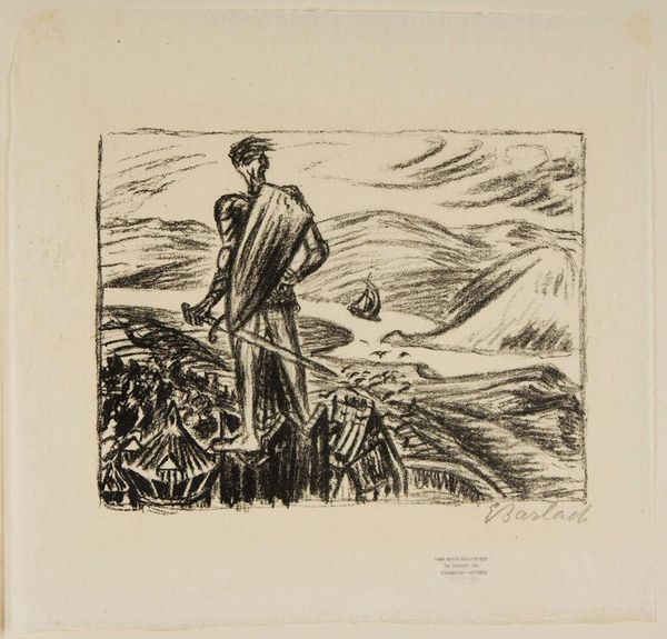 Editor: This is "Plate II" by Klaus Wrage, and it's a striking black and white print. The crowd looks anxious and desperate. What jumps out at you when you look at this piece? Curator: It's the dynamism of the crowd that grabs me – they're not just passive observers, but a sea of individuals each with their own story. The artist seems to ask, “How do we find ourselves in a crowd, and what responsibilities do we have to each other within it?” Editor: That's a really interesting way to think about it. I hadn't considered individual stories. Curator: It makes you wonder, what brought them all together in this moment? Food for thought, eh?