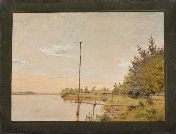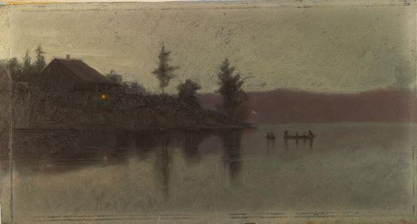 Albert Edelfelt made this painting with oil on canvas, a material that has a deep history in the art world. The surface of the painting is fairly smooth; Edelfelt has blended his colors to capture the still lake at sunset. The oil paint allows Edelfelt to apply thin layers, or glazes, to slowly build up the image, mimicking the way light filters through the atmosphere. The way in which the paint is applied is part of a long tradition, and its reliance on industrial production has also been tied to wider social issues of labor, class and politics. The amount of labor involved in the production process is apparent in the way Edelfelt has taken the time to blend his colors. The combination of materials and making, helps to understand the full meaning of the artwork, challenging the traditional distinctions between fine art and craft.