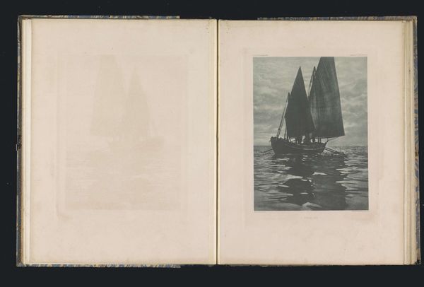 Editor: Here we have a monochromatic print titled "View of the Port of Santa Pola, Spain", made before 1899, credited to Augusta Victoria, the Empress of Germany. The whole image is really serene, quiet almost, and everything’s muted by the pale greys. I'm curious—what do you make of the visual composition? Curator: The tranquility you observed arises primarily from the restricted tonal palette. Consider how the artist manipulates value to flatten the pictorial space, blurring distinctions between the atmospheric sky and the reflective water. The Impressionist label hints at this blurring. Observe the rhythmic repetition of the masts, their verticality acting as a counterpoint to the horizontal expanse of the harbor. Note the emphasis placed on light and its reflections. Editor: I see what you mean about the reflections creating a flat space and emphasizing the tonal unity. It does bring an odd sort of harmony to the scene. What does that imply about the artwork? Curator: The work emphasizes the inherent qualities of the medium itself, its capacity to evoke mood and atmosphere. The artist prioritized subjective visual experience over meticulous representation. Notice that linear perspective is downplayed. What this work communicates may be considered apart from the context, in the artist’s application of compositional elements and handling of value, line and texture. The formal construction dictates the emotional experience. Editor: So, focusing less on what it *is* a picture of, and more on *how* the picture is made. Curator: Precisely. This approach reveals that the significance is not tied to subject matter but arises from visual structure. Editor: I appreciate that different way of considering artwork, stepping away from context, and just observing visual and emotional impact through form.