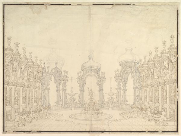 Editor: This engraving, "Illuminatie van het theater te Den Haag voor de Vrede van Aken, 1749," captures a cityscape with some serious baroque vibes. I'm struck by how the illumination almost transforms the architecture into a stage set, with those heavy curtains framing the scene. What stands out to you in terms of symbolic meaning? Curator: The illumination itself speaks volumes. Light, often a symbol of enlightenment or divine presence, bathes this theatre, built to celebrate the Peace of Aachen. Peace is never merely the absence of conflict; it requires construction, a staging. The light emphasizes this active, performative aspect of peacemaking. Notice the reflections in the water – how might you interpret their psychological weight? Editor: The reflections add to the theatrical feel, like a dreamscape or memory. Almost as if the image itself carries the weight of past celebration. Curator: Precisely. And the symmetry! Baroque art loved symmetry, order. Here it signifies not just aesthetic harmony but perhaps a hope for social and political harmony, an ordered world following the chaos of war. The architecture becomes a stage for societal values. Consider the text cartouche too; how does it interplay with the visual rhetoric? Editor: I see the inscription seems to solidify the event in collective memory, making the print itself an artifact performing cultural work. The details really are thought-provoking! Curator: Indeed. Think of prints like this as more than just representations. They served as active participants in shaping public perception, reminding viewers of shared values and the promise of a peaceful future. And even now, centuries later, we’re engaging in a kind of echo of that original performance. Editor: That’s incredible, I’ll definitely look at prints differently from now on! Thank you for sharing such an insightful interpretation.