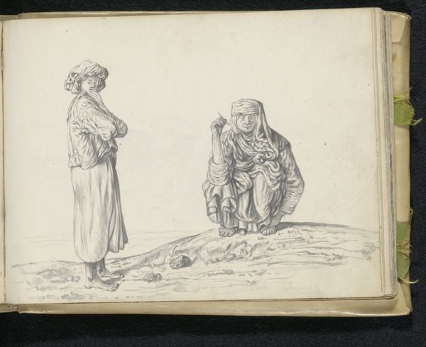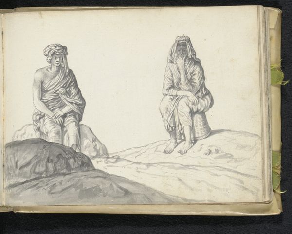 Esaias Boursse made this pencil drawing of two Muslim men sometime in the 17th century. The artist's hand skillfully captures the texture and weight of their garments. Note how the soft, flowing lines create a sense of volume and depth. Boursse employed a refined and controlled technique, building up tone through delicate hatching and shading. This process allows for a remarkable level of detail, from the intricate folds of fabric to the subtle contours of the men’s faces. Boursse's artistry demonstrates a clear understanding of both artistic traditions, and the social context of his time. The artist engages with both the tradition of fine art drawing, and the social context of cultural exchange and representation. This challenges the distinction between high art and observation, reminding us of the importance of material, process, and context in fully appreciating this work.