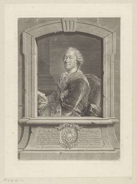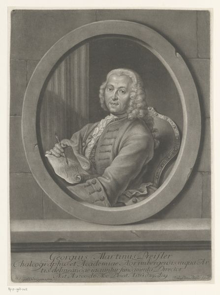 Curator: Standing here, we are looking at Johann Georg Wille’s “Portret van Claude Nicolas Le Cat," created in 1747. It's a compelling portrait rendered as an engraving, now residing at the Rijksmuseum. Editor: Oh, my. He does look rather pleased with himself, doesn’t he? Like a cat that's gotten the cream, but in wig form! The delicate lines give it such a poised, almost self-satisfied air. Curator: The means of production here are key. Wille, as an engraver, wasn't just an artist, but also a craftsman, skilled in reproducing images. This piece is more than just a likeness; it's a printed commodity intended for wider consumption. Note the quality of line on the paper, each one is laid down deliberately to create depth, tone, and form. Editor: Precisely! And there’s a curious tension in the material. The crisp precision contrasts amusingly with the rather theatrical fluff of the man himself. His lace! His wig! It feels almost like a comment on the vanity of the elite. A witty barb disguised as elegant flattery, wouldn't you agree? Curator: Flattery had its place, certainly, but engravings like these also served the scientific community. Le Cat was a famous surgeon. And so, Wille created something functional and decorative for distribution to the wider society, reflecting Le Cat's social standing and scientific credibility. It highlights how prints operated within networks of power and knowledge. Editor: I can see that. And thinking about the role of prints –imagine stumbling upon this in a doctor's office. I wonder if his pose would have calmed or intimidated patients! All the layers and lace—almost like he is being presented for dissection. What’s your sense? Curator: This really pushes us to question where we place value. Is it on artistic labor? On scientific knowledge? The value assigned to these sorts of engraved likenesses ebbs and flows through time based on complex socio-economic forces. Editor: Very true! Makes you wonder who will want our portraits in 300 years, doesn't it? What stories those pictures, filtered through changing markets, will tell. Anyway, thank you for contextualizing my spontaneous musings and lending insight into materials. Curator: Indeed, a welcome provocation. Reflecting on it all, understanding these historical dynamics makes engaging with art so much richer and interesting for wider audiences today.