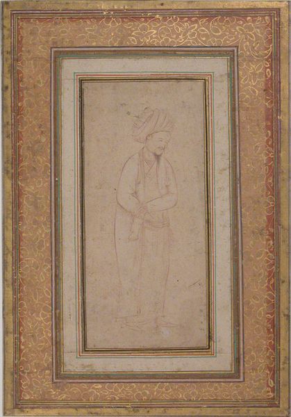 Art Historian: Here we have a piece entitled "Portrait of a Man," believed to have been created sometime between 1575 and 1625 by Riza-yi 'Abbasi. It's a delicate work executed with ink on paper. Artist: The man seems a bit melancholic, don't you think? Wrapped in what looks like a pale shroud or cloak, he's cinched at the waist with this vibrant green sash. And that slightly tilted hat... It adds a touch of nonchalance. Like he’s trying to look rakish, but he's also just a little sad. Art Historian: Well, portraiture during this period in Persia, especially miniature paintings such as this, were often less about capturing individual likeness and more about conveying social status, idealized beauty, or symbolic meaning within courtly settings. Artist: Status, you say? I get more of a 'lost-in-thought' vibe. His eyes are averted, and the colors, although subtle, evoke a dream-like state. That could have meant something very profound, right? Or maybe it was how you got people to sit still back then! Art Historian: Precisely. We also see examples of how these miniatures served as documents, portraying figures of importance within a complex network of power and influence. Artist: Still, looking at it now, centuries later, you almost strip all that away and get the human essence – this wistful character that Riza-yi 'Abbasi managed to capture. Makes you wonder what story is hiding behind the painting's veneer of tradition and social custom. What kind of anxieties are expressed by those who commissioned art? I would ask those commissioning art what are their fears, their love, their aspirations? Art Historian: And yet, knowing that it would have circulated amongst the elite—perhaps kept within an album or gifted amongst the court—changes how we receive that feeling. Artist: A conversation piece! Passed around, interpreted, each gaze adding another layer of meaning. We, standing here now, included. What a concept. Art Historian: Indeed. The work invites contemplation on both its aesthetic qualities and its function as a marker of cultural identity during a fascinating time. Artist: Well, I know what I'll be dreaming about tonight: green sashes, tilted hats, and the melancholic musings of a Persian gentleman.