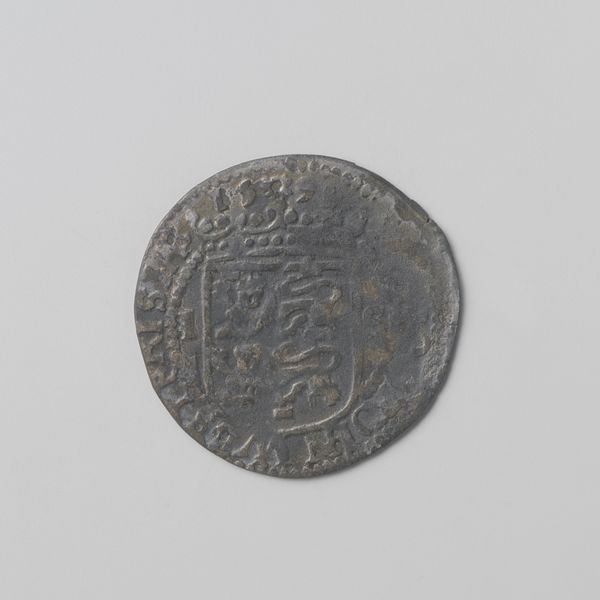 Curator: Here we have a 1/20 gulden coin from the Dutch East Indies, dated 1855. It’s currently held in the Rijksmuseum collection. Editor: The coin’s tarnished silver gives it an almost ghostly presence. I find the Arabic script deeply compelling—it reminds me of palimpsests layered through history. Curator: This coin represents more than mere currency; it's a potent symbol of colonial exchange. Consider the silver itself, likely mined under exploitative conditions, shipped across continents, and then transformed into currency to further entrench Dutch power. Editor: Exactly. Who benefitted from the creation of this object, and who was exploited in the process? It's a tiny coin, yet it encapsulates so much of the asymmetry of colonial power, not to mention forced labour and control of natural resources. Curator: And let's not forget the manufacturing process. The minting, the distribution—each step required labor, resources, and infrastructure designed to support the colonial administration and extend its reach. We can also explore coin design choices as they would’ve related to local artistry. Editor: Right. It’s interesting to consider this coin in relationship to, say, Indigenous artistry during the same era. What narratives were suppressed, and how did colonial artifacts displace traditional forms of exchange and symbolic representation? Curator: It’s a compelling visual bridge connecting seemingly disparate materials and the colonial economic and political reality from which it arose. The gulden, like many colonial currencies, fueled the exploitation of both people and resources. Editor: The weight of that history on such a small object! It becomes an icon for all that was traded, lost, and taken during that time. And prompts critical awareness about colonial afterlives within contemporary economies. Curator: Indeed. Examining an artifact such as this with an approach that recognizes its connection to the larger process from production to distribution exposes so much about the Dutch colonial system. Editor: It truly makes you think about the power of even the smallest objects to reflect massive historical inequalities and their ongoing impact. It makes me curious about decolonial approaches to numismatics!