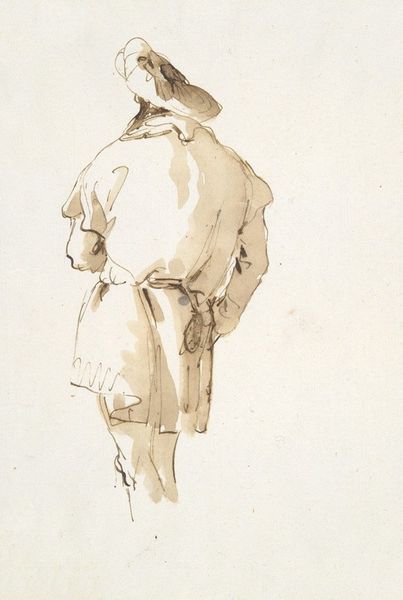Editor: We're looking at "A Girl Standing" by Eugen von Blaas, likely a watercolor drawing. The delicate wash of colors gives it such a fleeting, almost sentimental feel. What catches your eye, what stands out to you in this piece? Curator: It's interesting how von Blaas uses this intimate portrait as a study. Genre paintings were extremely popular then and art functioned very differently as an avenue of commerce, therefore studies such as this were as valuable, if not more so, than a commissioned piece. What do you think that reveals about the art world? Editor: So, it’s less about individual expression and more about a specific need within the market? Curator: Exactly! Consider also the social function of the child portrait. Often, it acted as a signifier of wealth and lineage, designed to communicate very specific messages about family and social standing, for whom was this drawing made? Editor: Given it’s a study, it’s interesting to consider who would have viewed it. Unlike a finished portrait on display, this may have been mostly seen in the artist’s studio. It almost provides an alternate understanding of how art impacts perception. Curator: Precisely! Perhaps its very vulnerability here, something outside traditional social markers, gave it particular strength and speaks more personally now. It is removed from a grand presentation, so its meaning today exists because we see the intention rather than the political statement. Editor: That makes me rethink the purpose and audience, how that shift informs our understanding of the artist’s choices. Curator: And how museums display art that could have originally had private audiences is just another dimension to that!