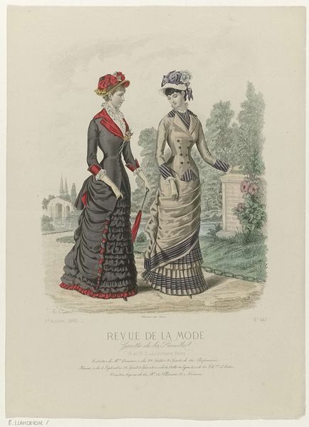 This fashion plate by E. Cheffer was printed in Paris in August 1881, using chromolithography, a method of creating colored prints from stone. The printed image represents the height of Parisian fashion. Its importance lies less in its artistic expression, and more in its role in shaping an aspirational lifestyle for its readers, the rising bourgeoisie. Notice the dresses and the parasols held by each figure. Their intricate details, especially the lace-work, speak to the incredible amount of labor required to produce them. The image showcases the complex social relations of production and consumption. It reflects a world powered by intense manufacturing effort, and also the consumer’s desire to display a high level of taste. Looking at this image, we can see that even images of fashion, which might seem superficial, involve deep histories of making, materiality, labor and aspiration. They embody the social and cultural values of their time.