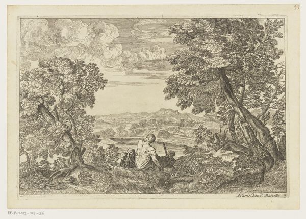 Jean Pesne created this landscape with satyrs and nymphs print some time between 1623 and 1700. This piece offers a glimpse into the 17th century's fascination with classical mythology and its integration into pastoral settings. Here, we see mythical creatures populating an idealized landscape, a common theme reflecting the era's longing for a harmonious relationship with nature, but it's worth asking, harmonious for whom? The satyrs and nymphs are sensual figures, and they are placed in the setting as though they belong there. This naturalizes a male gaze which is a cultural construction, and the lack of consent given by the nymphs to the satyrs promotes the problematic gender politics of the time. This artwork, while seemingly innocent, encapsulates complex social attitudes towards gender, class, and the natural world. As you consider this piece, reflect on how idealized landscapes can mask underlying power dynamics and shape our perceptions of beauty, desire, and belonging.
