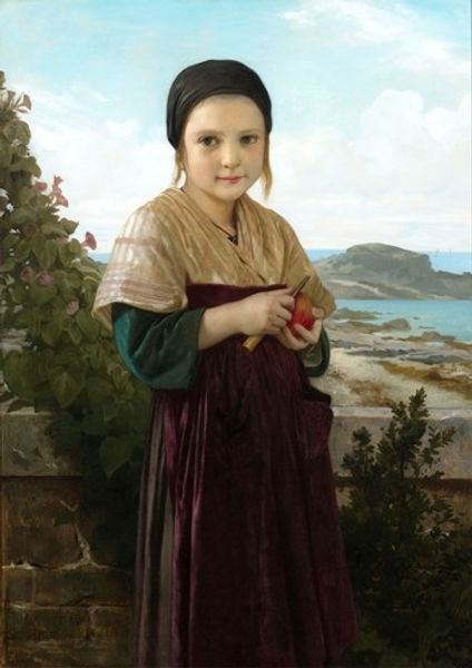 Léon Bazile Perrault painted this scene of a girl with apples, capturing a moment brimming with symbolism. The apple, of course, is heavy with significance. Consider its ancient echoes: in the Garden of Eden, it represents knowledge and temptation. Yet, here, held by this innocent girl, the apple seems to embody the simple, unspoiled bounty of nature. We see echoes of Pomona, the Roman goddess of fruitfulness, but filtered through a lens of youthful innocence. The rosy hue of the apple mirrors the girl's own cheeks, creating a visual link between her vitality and the fruit's life-sustaining properties. Even the act of offering the apple connects us to deeper, subconscious associations of trust, sharing, and invitation. This seemingly simple image is a powerful conduit to our collective memory, reminding us of the cyclical nature of life, growth, and the ever-present allure of the natural world.