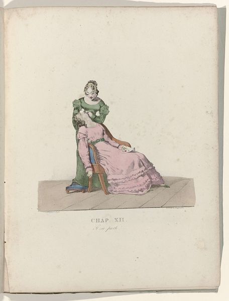 Gottfried Engelmann created this lithograph around 1828, a period when this printing technique was still relatively new. Lithography involves drawing on a flat stone with a greasy crayon, then treating the surface so that ink adheres only to the drawn areas. In this case, it allowed Engelmann to capture the subtle gradations of tone in the women's dresses, and the delicate lines of their faces. The print depicts two women, one seated and writing, the other leaning in with a questioning look, and its title translates to 'What to Answer Him?'. This highlights the social context of the artwork. The scene suggests the importance of communication and relationships, while also hinting at the constraints placed upon women. The lithographic process, though relatively efficient for its time, still required skilled labor. By focusing on the material and making of this print, we can appreciate its artistic and social significance.