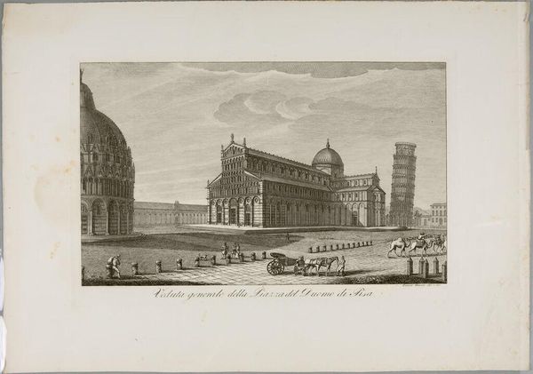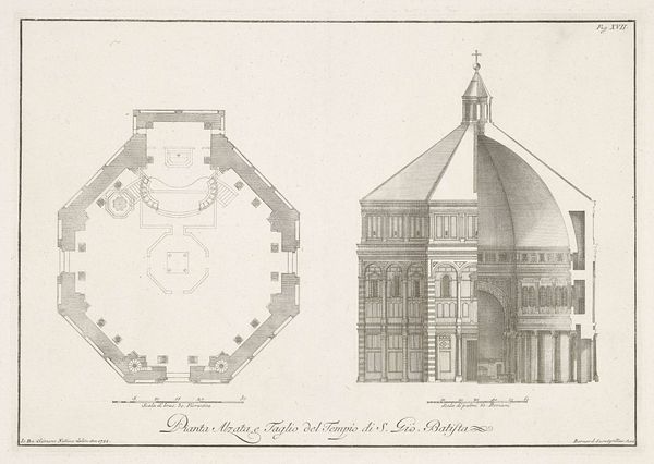 Curator: The work before us, "Exterieur van de Santa Maria del Fiore te Florence," is an engraving, offering an elevation of Florence's famous cathedral. Its creation is attributed to Bernardo Sansone Sgrilli and estimated between 1655 and 1755. The artwork is currently held at the Rijksmuseum. Editor: It’s a bit austere, isn't it? Almost like an architectural blueprint. But even through the strict linework, you feel the Duomo’s massiveness, that imposing silhouette. Like a dream rendered in perfect, unwavering lines. Curator: The precision emphasizes the Florentine Renaissance, embodying architectural values with historical and cultural weight, evoking classical proportions. Each line conveys detail, carrying symbolism of Florentine identity and architectural aspiration through precise form. Editor: It makes me think about what it must have been like to build something like that without CAD software! Each of those tiny lines painstakingly etched… I suppose that’s part of its magic, a testament to human endeavor. I wonder about Sgrilli, too – lost in those meticulous details, breathing life back into something already so monumental. Curator: Line engravings, especially of architecture, communicate more than blueprints; they portray a period's cultural ethos, an echo chamber reverberating through the Renaissance revival of classical proportions with a visual precision acting as a cultural mirror for generations. Editor: Exactly! It’s a recording of a place, yes, but also an encoding of intent – to make something enduring, both the building and the image of it. I see faith, civic pride, and human striving. Maybe it's too much to read into some lines scratched on a plate… but maybe that’s the whole point. Curator: Perhaps its minimalist presentation allows each person's narrative to resonate with a specific timeframe. We can look and contextualize the work through the themes it embodies of linear style and the broader perspective on Baroque artistic conventions prevalent at the time of conception. Editor: Indeed. A delicate dance between representation and resonance. I appreciate how it quietly commands attention. Like looking at a carefully orchestrated stage set that is grand yet deeply intimate in its details. Curator: A unique artistic footprint, leaving an undeniable imprint of artistic endeavor and urban legacy from the city on view to our present cultural moment. Editor: Absolutely. Thanks for unraveling that, such a perfect encapsulation! It seems as if we both can step back and reflect and now more profoundly observe the magnificent city-scape on view.